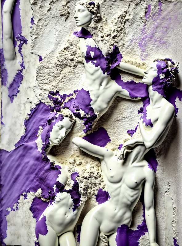 Miss AL Simpson's rendition of "Metamorphoses" is a timeless and enduring series of works. Ovid's "Metamorphoses" has profoundly influenced Western literature and art for centuries. Miss AL Simpson draws upon these timeless stories to explore the complex relationship between AI and humanity. For instance, in the tale of Narcissus, who becomes transfixed by his reflection, Simpson finds a parallel to humans fixating on the output of AI, perceiving it as conscious and relatable rather than recognizing it as the product of an algorithm. With masterful skill, she adapts the themes of transformation and the interplay between the human and AI realms, resonating with contemporary audiences. Leveraging the capabilities of 0KAI, Miss AL Simpson develops her concept by employing prompts and a combination of traits and rarities, blending the poems with her earlier analogue artwork from 2018 to create a beautiful body of work.